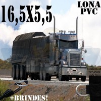 Lona: 16,5 x 5,5m de PVC Premium para Caminhão Vinil Vinilona Emborrachada Preto Fosco Anti-Chamas + 28 LonaFlex Gancho 25cm + 28 LonaFlex Gancho 50cm 1 ROW 0,75m R$ 4.798,00